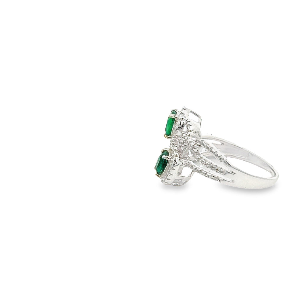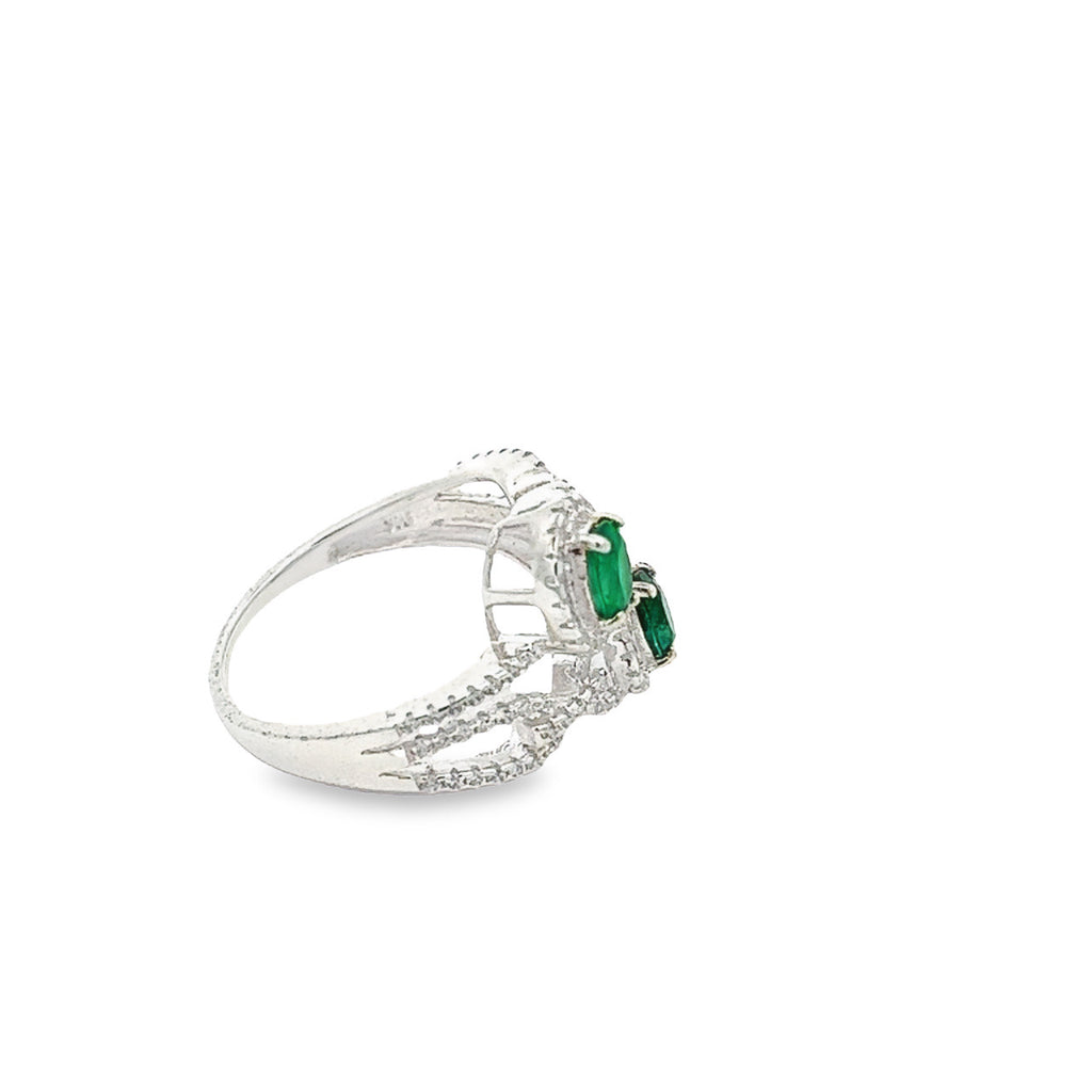 Ring-Silver 925 CZ and Natural Colombian Emeralds- Oval shape .80 Carat